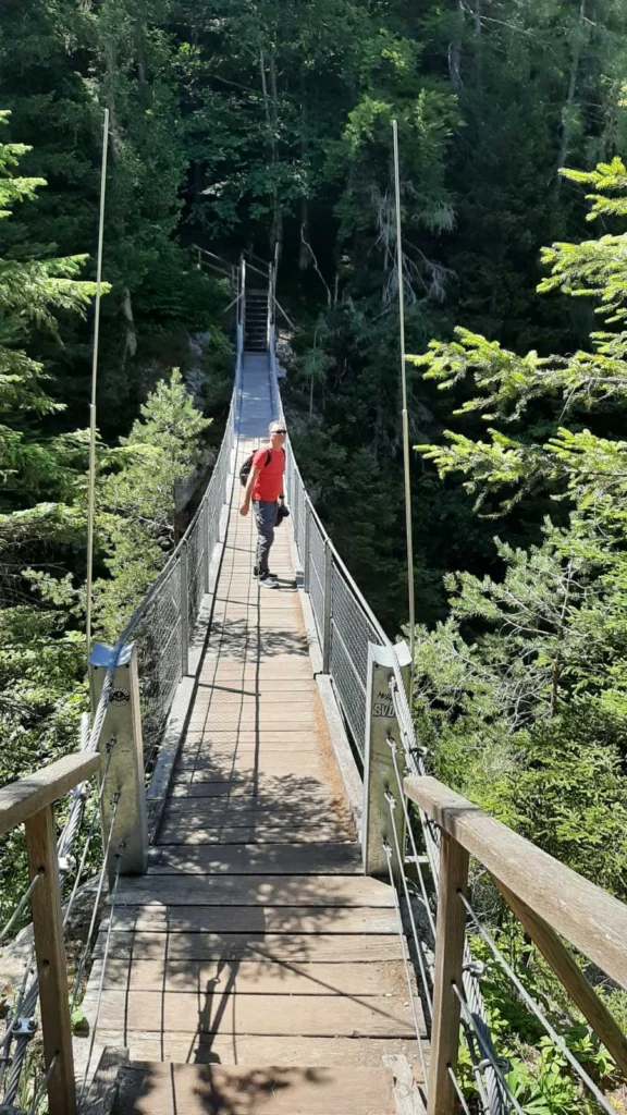 Povratak prema jezeru biramo istim putem, ali ovaj put prelazimo viseći most, a zatim nastavljamo šumskim putem. Na jednom dijelu put nas vodi ravno kroz rijeku. Skidamo tenisice i, uz osvježenje hladnim riječnim oblutcima pod nogama, doživljavamo prirodu na najdirektniji način. 😉