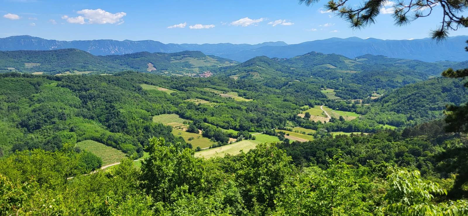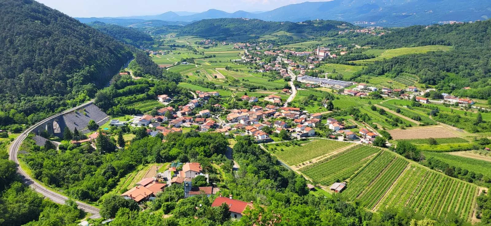 Von oben betrachteten wir die endlosen Karsttäler, Weinberge und roten Dächer der alten Siedlung.
