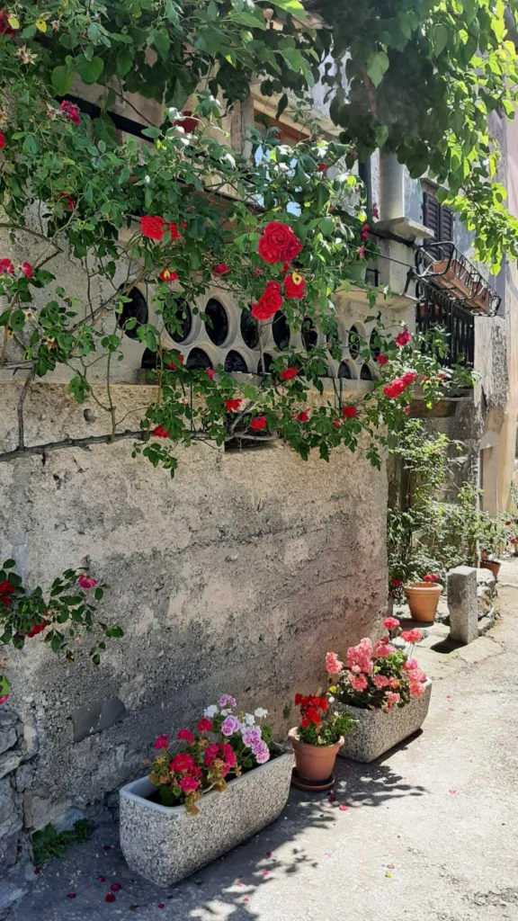 Im ersten Schritt eroberte uns Stanjel: gewundene Kopfsteinpflastersteine, viel Grün, unwiderstehliche Kränze aus frischen Blumen, die von fleißigen Frauen hergestellt und verkauft werden. Der Preis? Sympathisch 30 Euro!