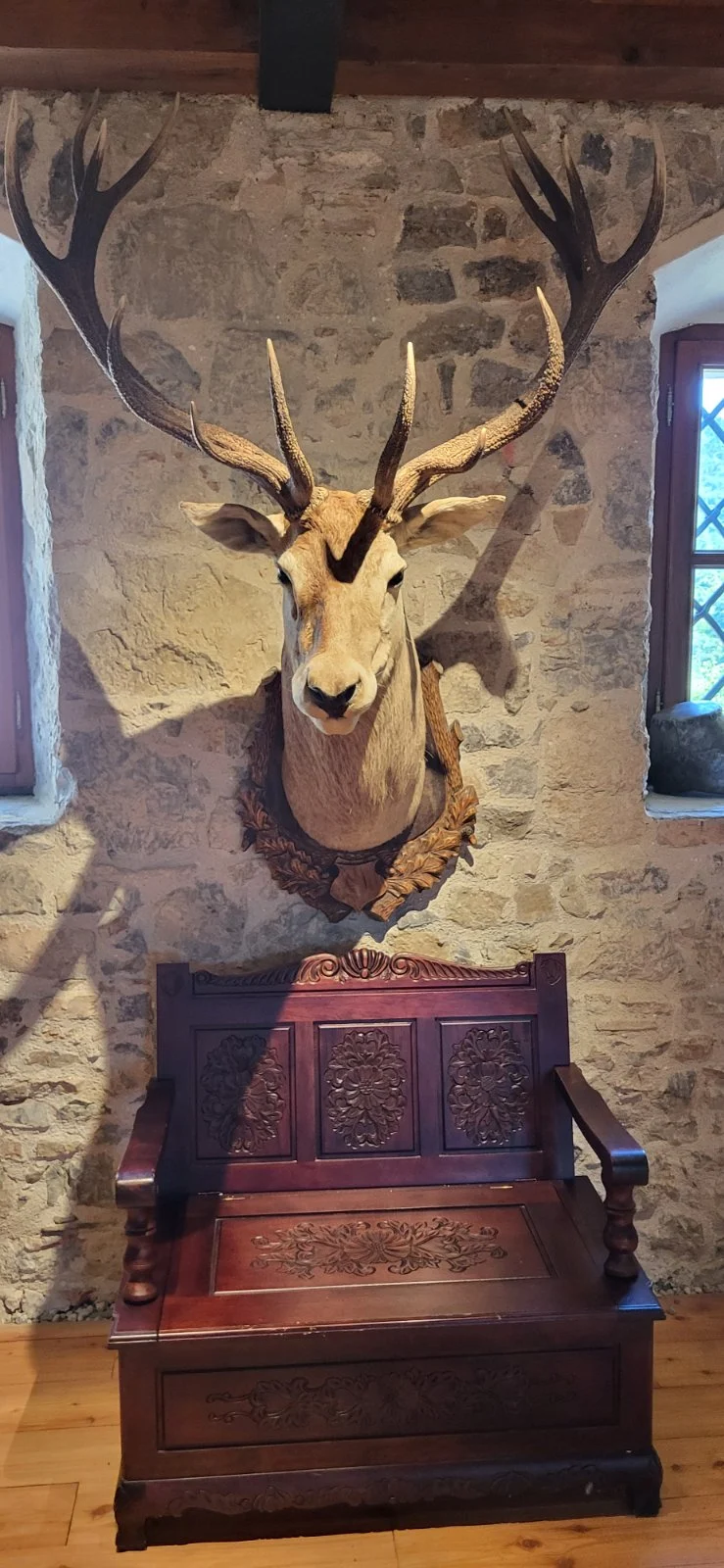 Wir sahen einen Film über die Geschichte des Schlosses und das Leben und die Bräuche der Menschen, die hier lebten. Nachdem wir die Gegend um das Schloss herum besichtigt hatten, gingen wir in Richtung seines Turms, wo wir die schmale Steintreppe hinaufstiegen.